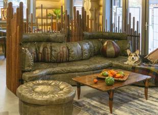 Необычный дизайнерский диван из массива пальмы и шкур